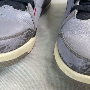 Mens grey, black and red Nike Jordan Flight Origin basketball shoes.