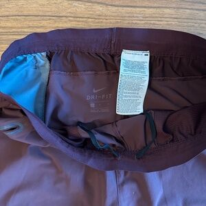 Nike running pants. Tapered leg & fitted pant for warmth. Size large, burgundy colour.