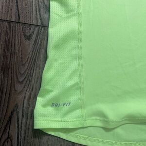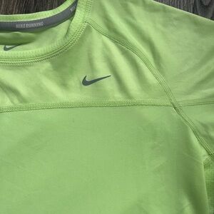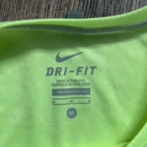 Vibrant lime green Nike Dri-FIT running shirt, size medium. Ideal for active wear.