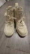 Stylish beige high-top sneakers with lace-up design and ankle strap.