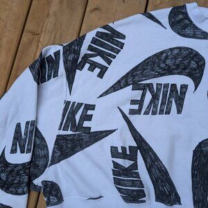 Nike Sportswear All-Over Swoosh Logo Cropped Crewneck Sweatshirt - White L