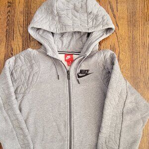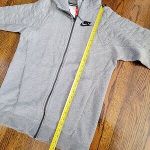 Nike Sportswear Gray Long Full Zip Hoodie Women's Size Small Please see Photos for Measurements Quilted Hood and Arms Fleece Hooded Sweatshirt Vintage Style Red Tag Nike Hoody