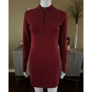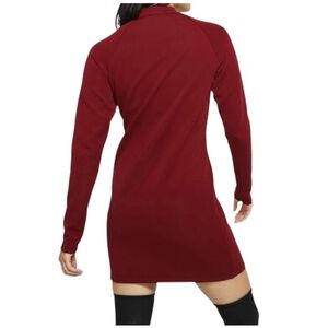 The Nike Sportswear Long-Sleeve Dress is made with a stretch knit fabric with a soft feel. A mock neck provides a modern look, while a front zipper lets you adjust the fit.