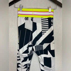 Nike Sportswear Running Leggings Stirrups black white yellow logo print Sz XS