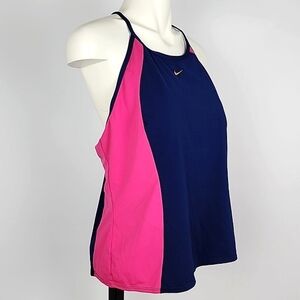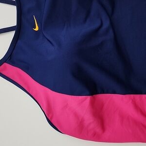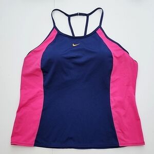 Nike Tankini Swim Top Racerback Navy Pink Shelf Padded Bra Size 18