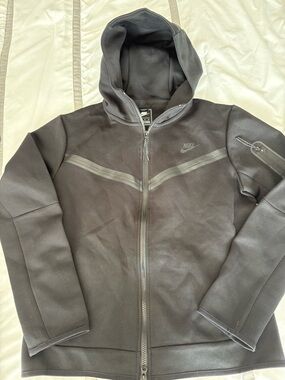 Nike Sportswear Tech Fleece Windrunner Hoodie Olive Green in Men's Size Large. Full zip closure. Made from double-sided spacer fabric for added warmth without extra weight. A slightly taller collar in the hood helps keep you dry in cold, wet weather. Style CU4489-326. Made in Vietnam. Machine washable. Great pre-owned condition. Please review all photos.