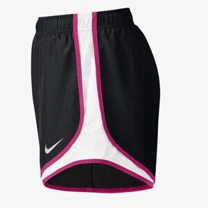 Nike Tempo Running Shorts in Black, White and Pink and Women's Size XS. From 2021. Light and smooth, the Nike Tempo shorts give you comfortable coverage for your run. Their classic design features curved side panels. Drawstring waist. Hidden pocket. Very good pre-loved condition. No visible flaws.