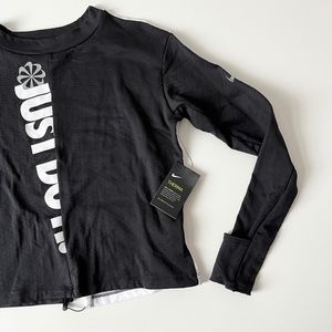 Nike Therma Long Sleeve Asymmetrical Running Dri-Fit Top Black White Small