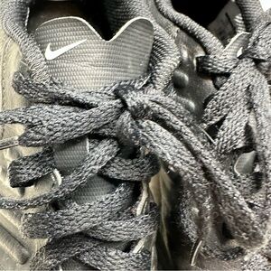 These Nike cleats feature a sleek black and white design with a textured upper that enhances grip and style. The low-cut design provides comfort and flexibility, while the black laces ensure a secure fit for optimal performance.
