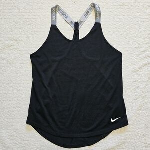 The women's training tank top is made from Dri-FIT fabric that wicks sweat away to keep you dry and comfortable. Loose fit and narrow straps for exceptional freedom of movement.
