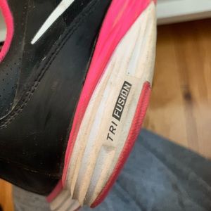 In 8/10 condition. Great running shoes. Small wear on the bottoms of the soles. Otherwise great!!