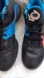 a pair of black and blue athletic shoes, likely sneakers or basketball shoes. They feature a prominent blue strap across the laces and a blue lining around the ankle and tongue. The shoes have white Nike Swoosh logos on the sides and a distinct logo, possibly a stylized "KD" (Kevin Durant), on the tongue of the right shoe. The soles appear to be black.