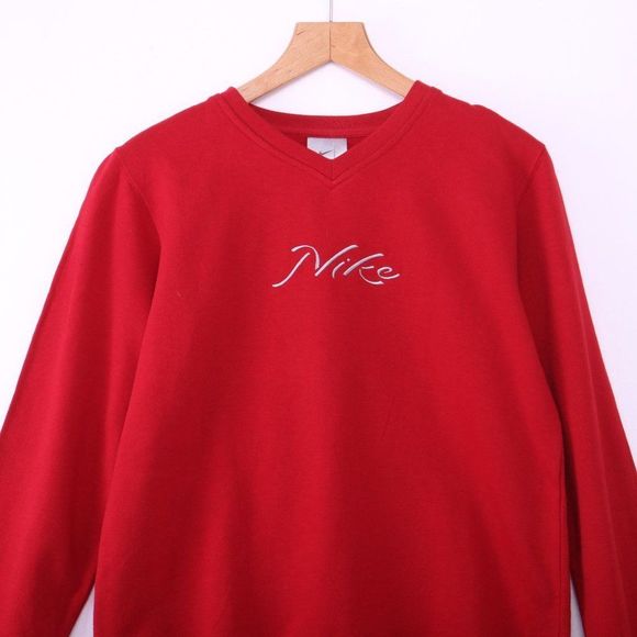 Nike V Neck Embroidered Logo Red Sweatshirt , Soft, Stretchy