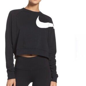 Crafted for comfort and performance, the Nike Versa Cropped Sweatshirt in classic black is a versatile addition to any activewear wardrobe. This long-sleeved pullover, sized XS, boasts a blended fabric that ensures both durability and a soft feel against the skin. The sweatshirt is designed to fit a variety of body types with its regular fit, making it a go-to for gym workouts or casual outings. Distinct Nike Dri-FIT technology helps keep you dry during intense activities, while the subtle logo accent adds a touch of sporty elegance. Suitable for all seasons, this sweatshirt is not just about function but also about style, effortlessly blending with your personal style and the demands of your active lifestyle.