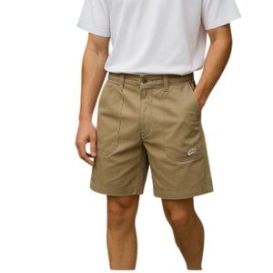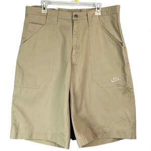 Nike Vintage Y2K Shorts Khaki Tan Twill Baggy Skater Embroidered Swoosh Logo 38