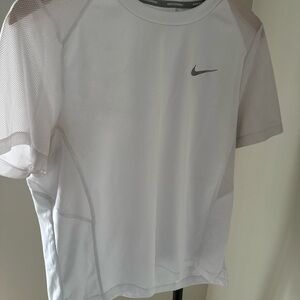 Experience the perfect blend of style and comfort with this Nike white fitted t-shirt. Featuring a classic crew neckline and short sleeves, this top is designed for both athletic performance and casual wear. The subtle Nike swoosh adds a touch of iconic branding to this versatile piece.