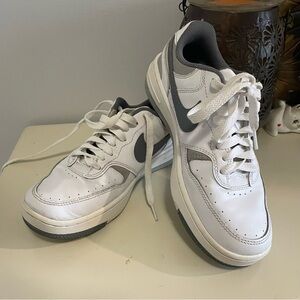 Classic Nike sneakers in white and gray. Ideal for casual outings.