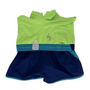 Introducing a pair of pre-owned Nike Dri-FIT Women’s Running Shorts in excellent condition, designed for the active woman who values both style and performance. These shorts feature a flattering navy blue base with vibrant bright blue trim, making them a perfect addition to your athletic wardrobe.