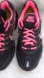 a pair of black and pink Nike running shoes.