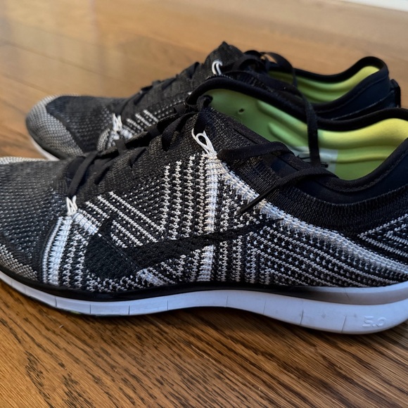 Sleek Nike sneakers with a knit design. Black and white colorway. Ideal for casual wear.