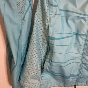 Nike Women's Running Jacket Size XS Blue Attached Hood Reflectors Windbreaker
