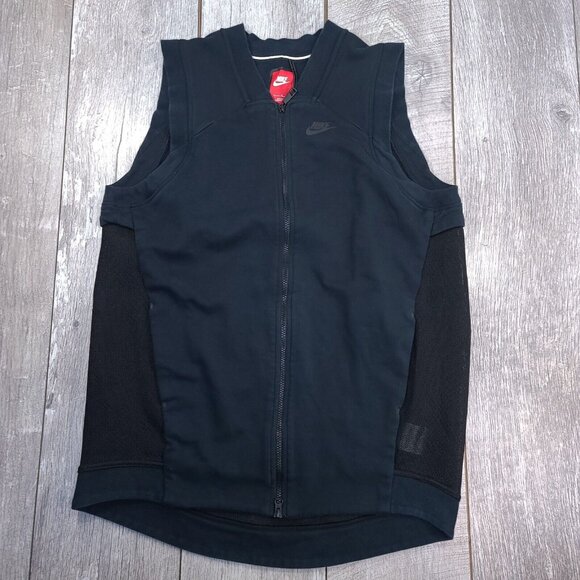 Nike Womens Tech Fleece Vest Size Large Black Mesh Back Full Zip Sleeveless