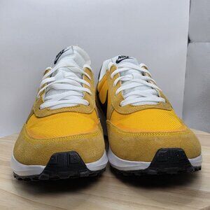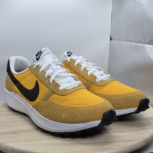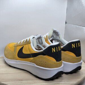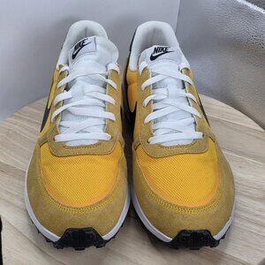 Stylish Nike athletic shoes. Vibrant yellow with black accents. Comfortable and durable design.