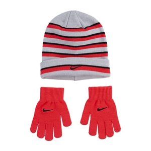 Nike Youth Girls Striped Beanie & Gloves Neon Pink