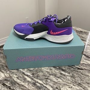 Cutouts in the foam under the toe and heel reduce overall weight and offer lightweight comfort. Molded backward Swoosh logo adds a signature of Giannis' style. Molded grooves in the rubber outsole allow the shoes to bend and flex. Multidirectional traction offers side-to-side stability.