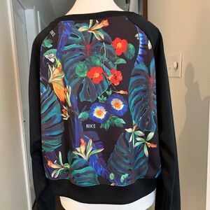 Nike crop pull over top in excellent used condition with no wear, stains or damage detected. Long sleeved, sweat shirt influenced but much more refined, meant to hit bottom of rib cage for XL body, can work as an oversized top on smaller sizes. Layer over a tank top or show a sexy flash of bare midriff with fabulous colours in a tropical print suitable for street, resort, cruise or (gasp) athletic wear. 100% poly for easy wear and care. Add your favourite jeans, leggings or shorts, some colourful accessories (some suggestions shown all listed and priced separately in Our Closet) for easy, comfortable on trend fashion. Build your look, make a bundle to save a bundle with Lemon Squeezy Shop🍋