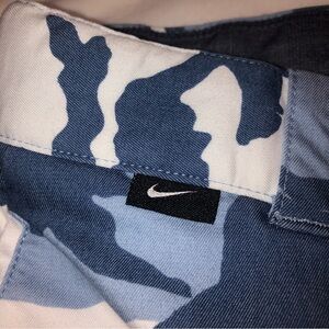 Nike dri-fit blue camouflage golf shorts. Size XL youth, standard fit. measurements waist 15 inches across. Button closure with 4 pockets.