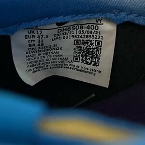 Nike sneakers with a striking blue and purple color scheme. Enhanced with white highlights for a modern touch.