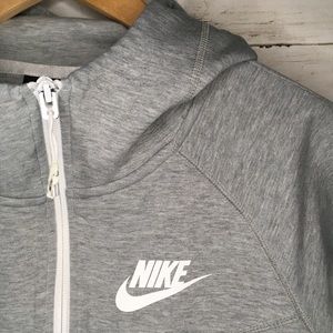 Grey Nike fitted hoodie with defined waist and front pockets. Soft with some stretch. Size medium. Zipper pull string is damaged, but the rest of the hoodie is in otherwise great condition.