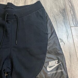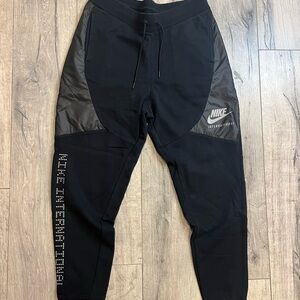 Nike international tracksuit. Black with gray patterns. Size large. Like new. Comfortable and trendy.