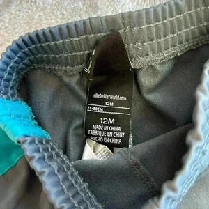 Features: Elastic waistband, embroidered logo on upper left thigh, decorative stripes along the side