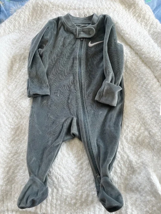 Super cozy Nike sleeper. Velvet feel with small Nike check marks throughout.