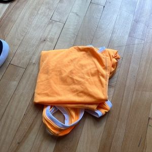 Women tank Nike dri-fit orange Wear 2-3 times Small women Reflective band in the back The orange is bright just hard to show on picture