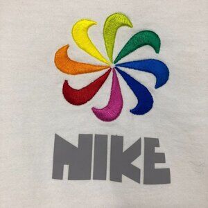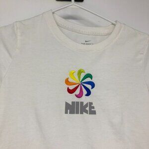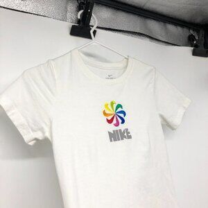 Nike white rainbow pinwheel checkmark graphic crewneck cotton t-shirt XS