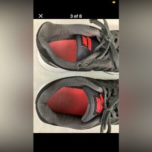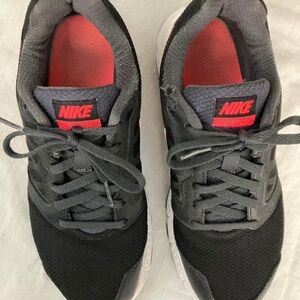 Nike women’s size 7 1/2 running shoes ( approx. junior size 6 boys- girls size ) Downshifted 6 model Great shape both inside and out. Only a small amount of wear on inner top edge of left shoe as seen in 3rd photo but doesn’t affect use.