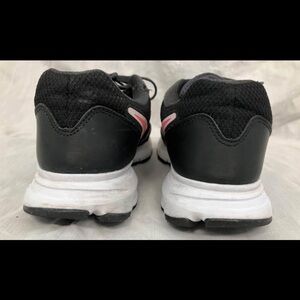Nike women’s size 7 1/2 running shoes ( approx. junior size 6 boys- girls size ) Downshifted 6 model Great shape both inside and out. Only a small amount of wear on inner top edge of left shoe as seen in 3rd photo but doesn’t affect use.