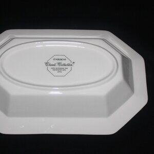 Part of its Classic Collection and made in Japan, the bowl is 10 5/8" in length, and 7" width. It is oven, microwave, and dishwasher safe.