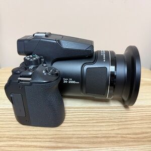 Like new, less than 500 shots. Fantastic zoom capability. Great camera for moon shots, birding, wildlife. Everyting works as it should I'll include a 128GB SD memory card. Comes with booklet, strap, usb/outlet charger. All specs can be found here on Nikon's website: https://en.nikon.ca/p/coolpix-p950/26532/overview I just don't use it as much as my other camera. I do not have the original box.