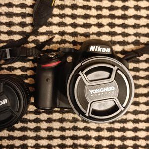 Nikon D3200 for sale. Comes with 18-55mm Nikon lens, 50mm yongnuo lens, backpack camera case, two 16GB memory cards and all the cords including the charger. It's in new condition, I've hardly used it.
