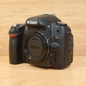 Reliable Nikon D80 digital SLR camera body with 10.2MP resolution.