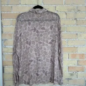Excellent condition. Elegant sheer blouse with a leaf pattern. Button-up front. Pale pink with brownish tones.