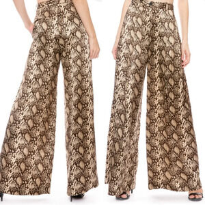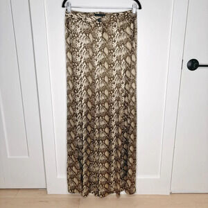 Nili Lotan Adalene Silk Dark Brown Snake Print Wide Leg Pants Size 10