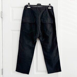 Done in the MOST beautiful cotton/linen blend twill fabric on earth - they feature a drop crotch and a frayed hem. Confusing to men as WHY we wouldn't want to wear a tight fitted pant - perhaps half the fun? Definitely a factor anyway. They're super comfy and are great when it's warm out. I like them best paired with sandals.