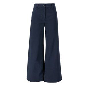 The 'Megan' trousers in navy blue by NILI LOTAN are made from high-quality cotton and feature a wide-cut leg. The casual fit and patch back pockets make this model stand out.