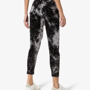 These black Nili Lotan Nolan tie-dye track pants are crafted from cotton and feature an elasticated waistband with a drawstring, side pockets, rear flap pockets, ribbed cuffs and cropped ankle length.