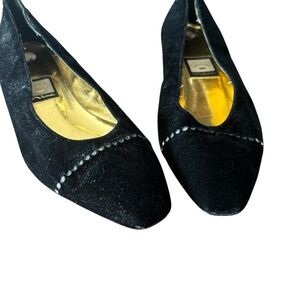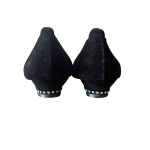 Elegant black velvet loafers. Features a luxurious gold interior. Ideal for stylish outings.